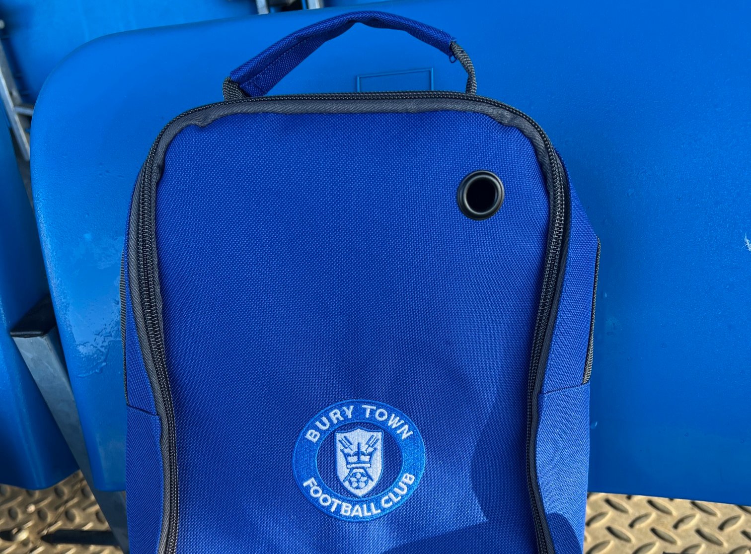 Royal blue boot bag embroidered with the club badge, storage space for football boots, trainers or shoes.